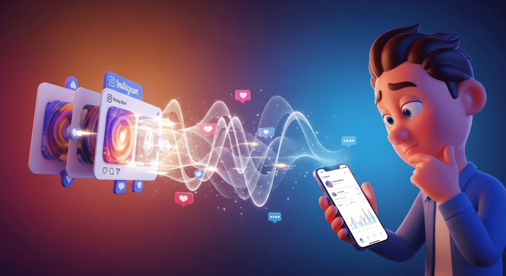 Quando um Reel é publicado, o Instagram mostra o vídeo para um grupo pequeno e estratégico de pessoas. Se esse grupo assiste, interage e não ignora o conteúdo, o alcance continua. Quando a reação esfria, a entrega é reduzida — e o crescimento para.